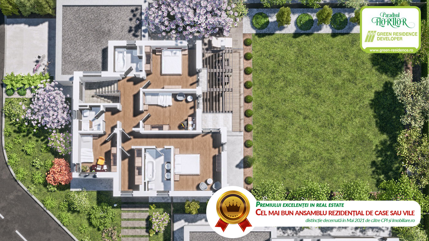 Ansamblul de locuințe PARADISUL FLORILOR este situat în incinta complexului rezidențial PARADISUL VERDE, din Comuna Corbeanca, beneficiind de toate facilitățile puse la dispoziție în cadrul complexului precum și de o serie de avantaje suplimentare.